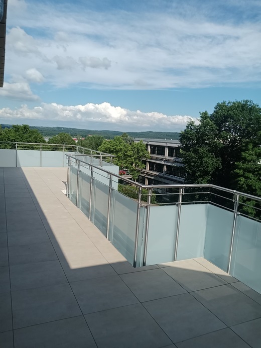 Balkongeländer Edelstahl mit Glaseinsätzen,