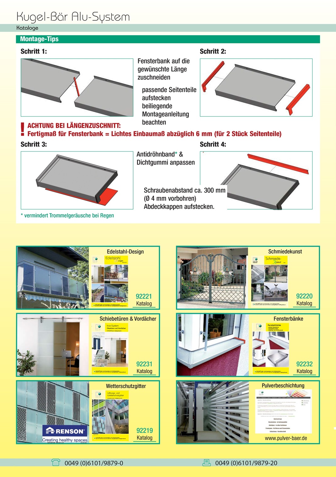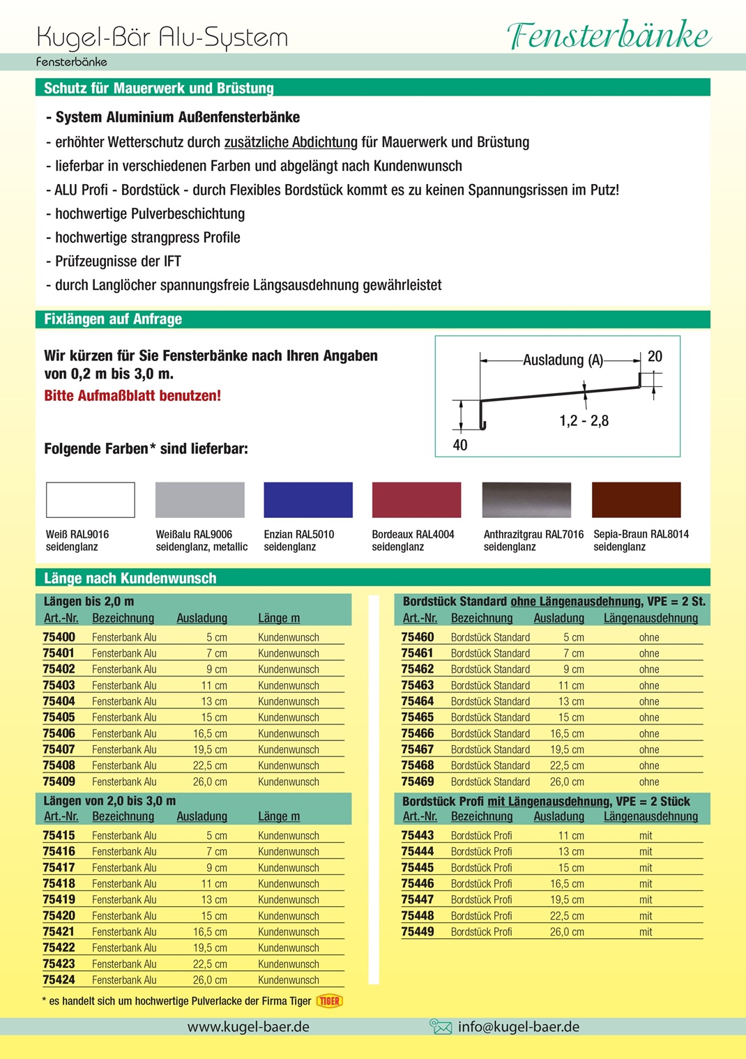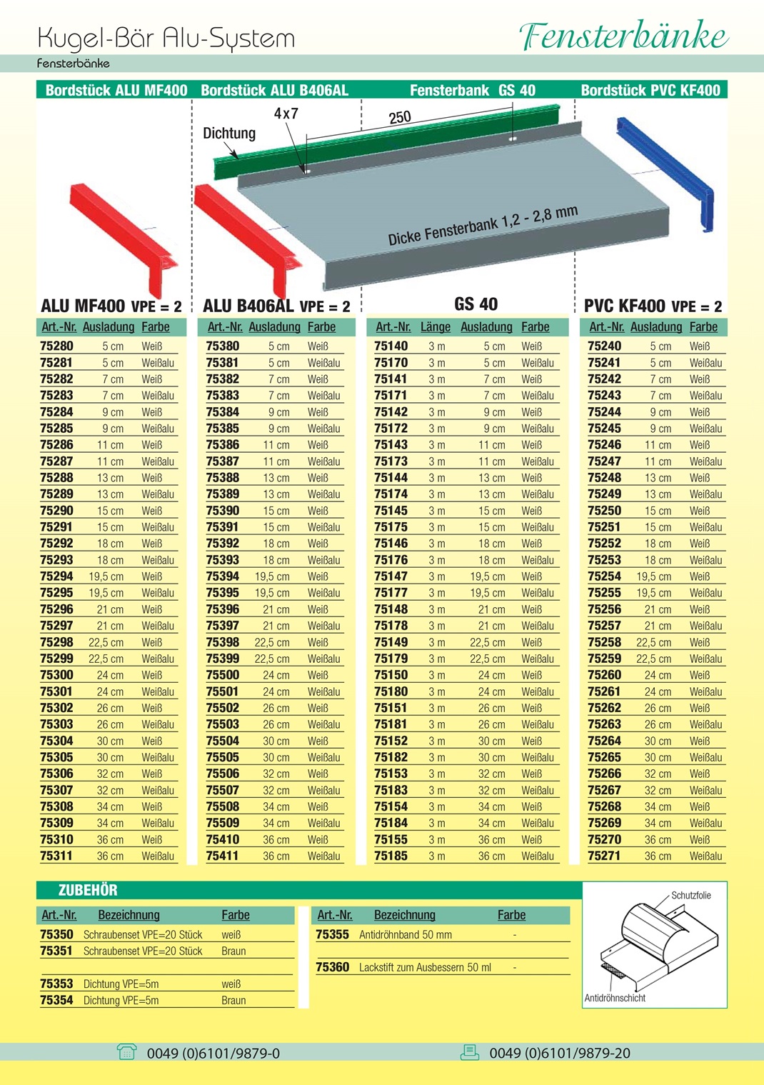 und Brüstung im Fensterbereich. Ein auf den Bedarf abgestimmtes Zubehörprogramm