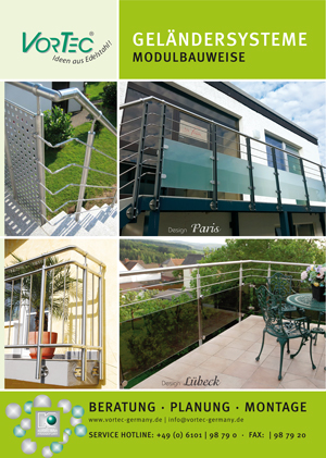 VorTec ist eine Marke von Kugel-Bär. Abgestimmt auf den privaten Anwender - ein Edelstahlgeländersystem zum "selberbauen" kein Schweißen ist nötige. Kleben, Schrauben fertig! - alle Artikel sind innerhalb von 24h lieferbar.